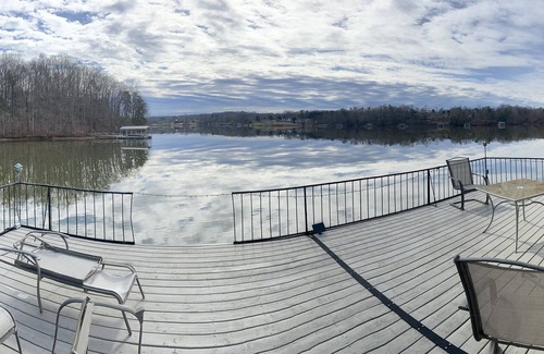 Lake Lanier retreat! - What a FABULOUS paradise! A 10-home gated upscale community on Wahoo Creek with slow, peaceful living. Located at the end of the cul-de-sac. Rare LEVEL PATH leads out to an amazing 32x32 covered double-slip party deck with a DEEP WATER boat dock. Main level features a luxurious master suite (King Bed) with master bath featuring a soaking tub, separate bath/shower and double vanity. Gourmet kitchen boasts gleaming hardwoods with finely cut granite. With an open, expansive feel your kitchen overlooks a cozy family room with a fireplace. French doors open to an expansive screened-in porch and large deck.