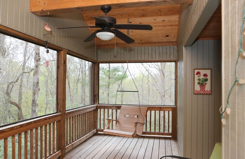 10% DISCOUNT ON NIGHTLY RATE FOR 7 NIGHTS OR MORE! Hiking enthusiast! This is a private two story cabin with a loud, rushing stream and not a soul in sight. It is the perfect place to relax, unwind, or if you like, start or end your hike. Less than two miles by car to Dick's Creek A/T access. If you would rather...you can take an easy 2 mile hike down the private National Forest Road in front of the cabin and then go approximately an additional 1 mile moderate hike which will bring you to Tom Cowart Gap on the A/T. Not a hiker, well just take a quiet stroll through the park like setting along the tree canopied path with 200 ft of rushing stream bordered by National Forest along the back of property. Complete seclusion! There is a fire pit, swing and benches there for your enjoyment. It's the perfect place to just sit and relax. With two porches and an upstairs screened balcony, you never have to leave the comfort of the cabin to enjoy the sights and sounds of the stream below. The three upstairs bedrooms (one with it's own private, screened balcony) each have queen beds for your comfort. All are equipped with ceiling fans, alarm /sound machines. The cabin has two full baths (one upstairs and a smaller full bath downstairs). There is a large family room with a glass fronted wood stove and large screen Smart TV with Roku device and a separate living area with TV off the dining area. Wifi, Direct TV and telephone with free long distance are also included. The cabin has a rec /laundry room with a TV with Roku or for videos or video games (you must bring) and plenty of games and puzzles for those rainy days or family night.