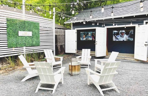 Guests have access to the whole house, a covered back porch dining room and back yard siting area with smokeless fire pit, adirondak seating and bistro string lighting. There is a also a detached garage if needing to keep your vehicle covered.