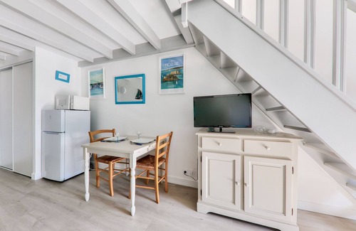 A peaceful stay with sea views in Carnac for 3 is located in Carnac. A peaceful stay with sea views in Carnac for 3 provides accommodation, featuring TV, Balcony/Terrace, Security/Safety, among other amenities. This Apartment features TV, Balcony/Terrace, Security/Safety, to make your stay a comfortable one.