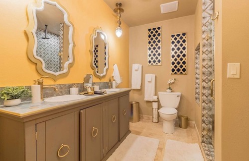 Indulge in a romantic escape at "The Taj," our exquisitely themed casita inspired by the timeless beauty of the Taj Mahal. Perfect for couples seeking an intimate retreat, this casita offers a serene and luxurious experience in the heart of Comfort, Texas.