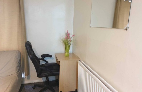 Furniture in the room: double bed and mattress with mattress protector and full bedding; double wardrobe; office desk and chair; dressing mirror; and Smart TV.