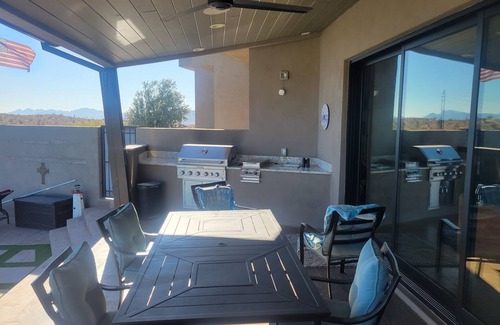 Escape to this adorable house in picturesque Fountain Hills. This cozy retreat features 2 soothing king bedrooms and 3 bathrooms with modern amenities like WiFi and AC. Relax in the cool living space or unwind in the refreshing shower. Enjoy all that Fountain Hills has to offer when you stay at our place. We are backed up to the overlook hiking trail with just a 10-minute walk to the Fountain Park. In addition to the full kitchen, there is a fridge, microwave, sink, and toaster oven in the 2nd bedroom. Heated hot tub and outdoor shower.