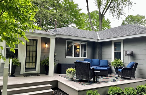 Our neighborhood borders the scenic Peterson Nature Preserve and is located just across the street from the Kalamazoo River area. Downtown Saugatuck is a short walk away, and the beaches are just a quick, easy drive. If you need additional space, our adjacent one-bedroom guesthouse may be available for rent. A fence with a gate separates the two homes to maintain privacy. Guests enjoy full access to all amenities—both inside and out. Plus, every “A Step Away” guest receives an exclusive discount at our local store during their stay. We’re also dog-friendly (with prior approval and a pet fee).