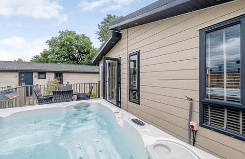 A stylish lodge with one master double with en suite shower room. Twin room with en suite shower room. Open plan kitchen and dining area. Doors leading to decking with outdoor hot tub.