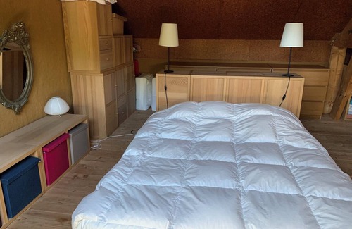 Construction is any ecological, made of brick, lime, earth and wood. With a vegetable garden, small, feeds some nomadic bees, sea butterflies. Upstairs, two bedrooms, one with a bathtub, her bathroom. Below, a sofa bed in the alcove and a large shower next. A large living room, a wood stove for rainy days, an open kitchen and a sunny terrace. A table under the mulberry tree for shade in summer. Sea 100 steps away. It takes his cup of tea, a drink, glasses and seafood snack in the basket ...