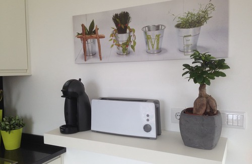 Open kitchen with fridge, freezer, toaster, expresso machine, induction hob and microwave. Bathroom with walk-in shower and hairdryer, cozy dining area with beautiful views and a south-facing sun terrace.