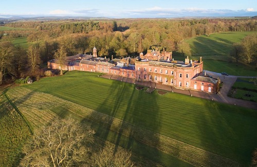 The apartment sits in 36 acres of parkland, where you can stroll across manicured lawns, enjoy a Victorian pleasure garden and walk through a walled garden that stretches for over an acre. The estate is nestled in north Cumbria, with spectacular views over the undulating landscape to the Scottish hills beyond. CCTV covers the grounds of Netherby Hall for security reasons.