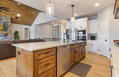 Welcome to Hawk's Cove in Climax Springs, MO, nestled at the 45 Mile Marker near Boondock's. This newly constructed house is a sanctuary of accessibility and luxury, designed for both fun and ease. Revel in two spacious living areas, a fully equipped eat-in kitchen plus a kitchenette, and seamless access to breathtaking views from our patios and decks. Our property, nearly ADA compliant, features a unique path leading directly to a private dock with no steps - ensuring everyone enjoys the lake life to the fullest. Hawk's Cove is the perfect base for your next Lake of the Ozarks adventure.
