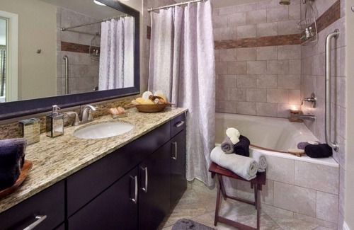 The spacious 2-bedroom villa is perfect for families or groups, featuring a king bed in the master suite, a king or queen bed in the second bedroom, and a queen sleeper sofa in the living area. A fully equipped kitchen, in-suite washer and dryer, private balcony, and cozy fireplace provide all the comforts of home, making it easy to relax between adventures.