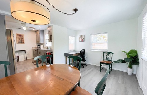 Minutes from the beach and downtown, this home is centrally located in a quiet brick paved street residential neighborhood. You can have your private space while vacationing with family, in-laws or friends... the best of both worlds. The main house is completed with 2 studios to accommodate a total of 10 guests. The house is equipped with everything you need to enjoy your visit to St Pete. Sip on a drink on the porch or relax in the backyard hammock with a book, while enjoying the weather.