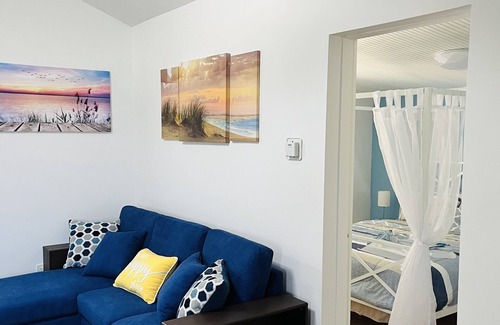 Create some memories in this unique place. An ideal place for a mini-vacation, couples' privacy or a family vacation. Enjoy kayaking, swimming, cycling or hiking nearby and return to this stylish location on the beautiful Hopatcong Lake, just 1 hour from New York City, 40 minutes away. Newark Liberty International Airport is a 3-minute drive away. from the train/bus station. A breathtaking view of the water opens from the dining room with a dining table where you can have breakfast and dinner while watching the sunrise and sunset over the water. The space is bright, the open-plan living room and kitchen are combined with high ceilings and an attic window. The living room has a wall-mounted 50-inch flat-screen TV and a door leading to a terrace surrounded by trees. The fully equipped kitchen is equipped with a stove, stainless steel dishwasher, full-size refrigerator with freezer and tea/coffee making facilities. In this room there is a separate queen-size bedroom with a wardrobe and a desk.