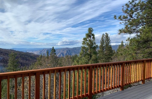 Aerial Ascent is a spacious 2800 square feet, three-bedroom, two-bath, sleeps 10 comfortably, new-construction home located inside Yosemite Park, in an area called Yosemite West. Enjoy modern amenities (Central Heat and Air Conditioning, Starlink high-speed WiFi, Satellite TV, Tesla EV charger) and spectacular views of the surrounding mountains and landscapes on both levels, all while being centrally located to the Valley, Badger Pass/Glacier Point, and Sequoia Grove. Flat parking for three cars side-by-side in all seasons! Prepare festive meals in the fully equipped and large kitchen that includes a Wolf six-burner stove, and then dine at the table that seats 10 or at the kitchen peninsula with plentiful stool seating. The house has two decks for eating and relaxing outdoors, a gas grill (Propane provided), and a gas fireplace in the open-space living room. A den offers satellite TV and a Blu-Ray player with movies to choose from. View stunning sunsets and spend the evening in the game room, complete with satellite TV, arcade games, a gaming table (cards, poker chips, and board games provided), and a pool table!