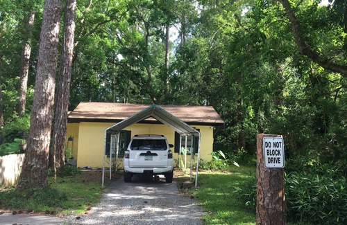 1 bedroom cottage as a detached apartment in central jacksonville, a short drive to everything. 25 minutes to the beach, 30 minutes to airport, 10 minutes to downtown, 15 minutes to St. John’s towncentet and top golf and 1 minute from the nearest hospital (Memorial). Cottage has one bedroom with small bathroom including a very small 3ft by 3 ft shower. Bedroom has a queen bed and 2 small closets. Living room has a large comfy couch and tv and roku. Full kitchen fully stocked for cooking and a small table with 2 chairs. Park off street with covered parking for 1 car!