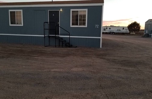 The location is in between the city of Williams, AZ, and the Grand Canyon South Rim. Although we use Williams’ zip code and city name in our address, our location is not inside the city of Williams, but it is 30 miles away from it. Please check the address with your GPS before driving to the location. From Highway 64 you will turn down a DIRT road called East Woodland Ranch Road. During winter months, it does snow, but most of the time the road is still drivable, even in cars. It’s located inside a mobile home park that has streetlights and is fenced in, but the area around the mobile home park is desolate and old. However, with it being so isolated, star gazing is highly recommended while you stay with us. There is a gas station 5 miles from the location that sells small amounts of produce and snacks. We do not have kitchens, but we suggest bringing food with you because there aren’t many options nearby besides the gas station and small restaurant 5 miles away from the property. We have charcoal BBQ pits, gazebos, and picnic tables around the property for guests to use. If there are any problems with the room, please message me through the booking platform, as it’s the fastest way to receive a response. Please be courteous to people who live and are traveling the area like yourself. For winter months we have a space heater located under the sink cabinet.