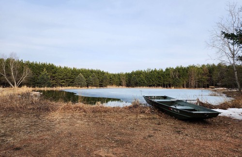 Cabin located in a remote location just minutes from the Chain 0' Lakes and downtown Waupaca. Looking for access to all the fun without the cost and chaos? Then this is for you. Surrounded by 120 acres of private property available for hiking with permission and a five minute trek to the Ice Age Trail and Hartman Creek State Park make this is a great getaway for those seeking some relaxation while still enjoying all the amenities that the Waupaca and Amherst areas have to offer. Well-equipped kitchen and standard refrigerator and freezer make meals a breeze with dining opportunities both inside as well as the private deck. Low cost makes renting a pontoon, kayaks, or jet skis more affordable on the Chain. TV is equipped with a Chromecast and requires use of a casting device (phone, tablet, etc.) to be used. Wi-fi also on premise. Please be aware there is no air conditioning. Ceiling has sky lights that tend to heat cabin up. Each room has a ceiling fan and there are portable fans as well.