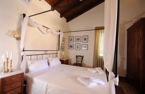 Agapi is a basement, 2 room residence of 25 square meters and it used to be the old columbarium of the house. It’s designed to give an agricultural feeling, with a veranda of 10 square meters and visible stone at the outside walls. The internal ceiling is covered with old wooden roof timbers.