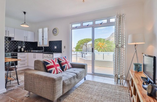 This comfortably furnished studio apartment has an open-plan design, an en-suite bathroom and a large living space. The living room has a comfortable couch and a flat-screen TV. The lounge leads onto a fully equipped kitchen which has all modern facilities and leads onto a huge terrace from penthouse level with spectacular views towards Table Mountain. The apartment is a great way to wake up to the mountain view every day.