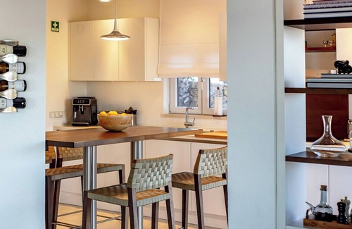 The lovely rental villa is a harmonious blend of form and function, with an open-plan layout that seamlessly integrates the living and dining areas, creating a spacious and comfortable atmosphere. The design is complemented by high-end finishes and modern amenities that ensure both comfort and style.