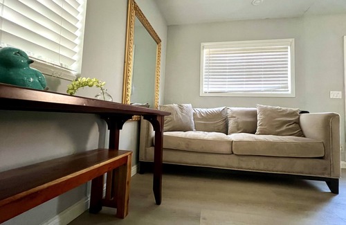 All newly renovated interior, and well suited rustic exterior, Sparrow Cot sits on a corner of a large lot on top of the hill just 1 minute off 78 in Vista California. Centrally located with short drive times to the San Diego Safari Park (25 minutes), Legoland (17 minutes), San Diego Zoo (40 minutes), Sea World (40 minutes), Disneyland (60 minutes ), Knott’s Berry Farm (60minutes) and minutes to downtown Vista, Carlsbad, Oceanside or Oceanside Harbor! We’re close to everything you could need on vacation. The Pacific Ocean is 8 miles away.