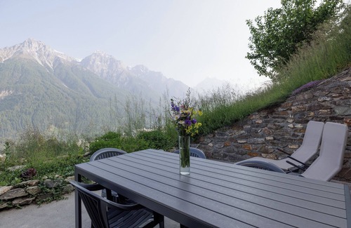 From the spacious garden seating area (approx. 25m2) you can enjoy an unobstructed panoramic view of the Lower Engadine mountains. The village center with the stores and the free ski bus to the ski area “Scuol Motta Naluns” can be reached in a few minutes on foot. In winter, the 10-kilometer-long dream slope takes you directly into the valley to Sent and ends not far above the vacation apartment.