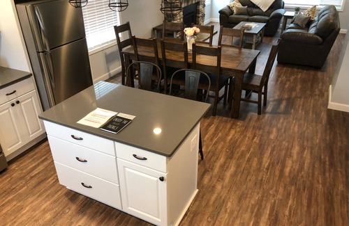 The home offers 3 bedrooms, 3 full bathrooms, and a cozy lounge room on the 3rd floor for added relaxation. On the first floor, you’ll find a fully stocked kitchen and a spacious living room with a picture window, gas fireplace, 50-inch TV, and a pullout couch for extra sleeping space. Sleep soundly on the memory foam beds throughout the house.