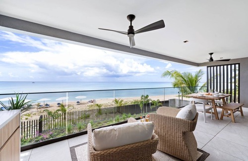 The condo’s open-plan layout welcomes an abundance of natural light, with floor-to-ceiling windows that showcase uninterrupted sea views. Each unit features a private patio, perfect for enjoying the fresh ocean breeze or sipping your morning coffee while taking in the stunning scenery. The spacious living area is complemented by sleek, modern furnishings and bespoke details, making this a truly unique home. Whether you’re unwinding in the living area or enjoying the view from your private balcony, the ocean is always within sight.