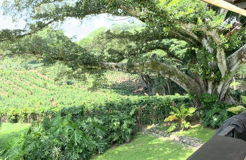 Hidden Paradise located on 3.5 private fenced acres (1.4 Ha) of tropical gardens surrounded by coffee estates at an elevation of 3000 ft (1000 m) above sea level. Open concept, high ceiling 3 bedroom home only a 7 minute drive west of central Atenas, a municipality featured in National Geographic as having the best climate in the world. The property endowed with breathtaking views is located on a ridge line within a gated community . Bilingual owner or assistant to help you. Immerse yourself in the peace and tranquility that abounds on our property. Let your senses enjoy the fresh mountain air, beautiful scenery and greenery. Maybe you will catch a glimpse of a Toucan or the nocturnal Cuyeo. More wildlife can be seen from our terrace. Enjoy the tropical fruits grown on the property including citrus, banana, mango, papaya, and plantain. We are currently preparing an environmentally sustainable organic garden with composter which will soon be ready for harvesting. Reacquaint yourself with nature, more so during these unforeseen and stressful times.