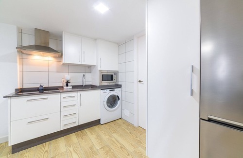 The open-plan kitchen, equipped with ceramic hob, provides everything you need for a comfortable stay, including a fridge, microwave, freezer, crockery, cutlery, cooking utensils, coffee maker, toaster and kettle. This flat is the perfect place to enjoy a relaxing holiday in Mojacar, combining comfort and functionality in a charming setting.
