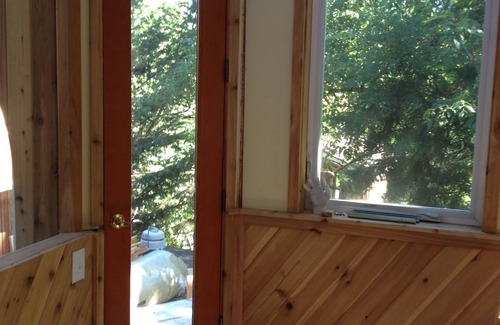 A full apartment in a convenient neighborhood, offering unusual design elements designed to make your visit to Eugene memorable, magical, and meaningful. It's a complete apartment, with a Murphy bed, bathroom, kitchenette, sitting and study spaces.