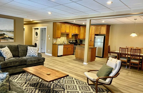 Located a scenic, 35 minute drive away from the Jasper townsite, this modern home provides 5 bedrooms, 2 full kitchens, 2 laundry units, 3 bathrooms, and 2 living areas.