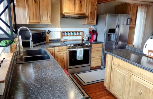 The house is set up with everything you'll need to enjoy your stay, including a fully stocked kitchen, and a stocked bathroom.