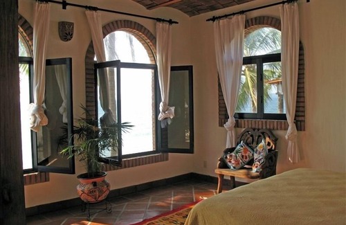 Keywords: Rivera Nayarit, private home behind hacienda walls and security fence, private pool, 1/2 acre, beachfront, oceanfront, free long distance phone, internet with wireless, stereo, TV. Onsite caretakers. Cooking and shopping available