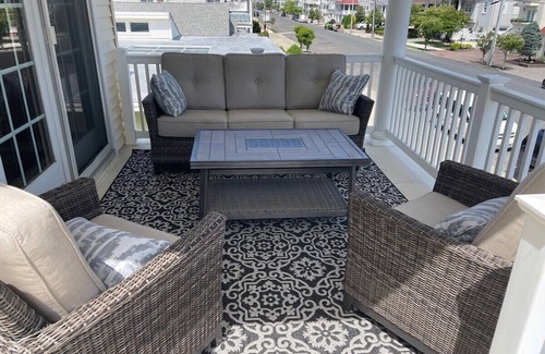 Located on the Gold Coast, the most desirable location in Ocean City. This amazing beach home located on the 2nd floor includes 5 bedrooms and 4 full bathrooms in the unit plus a 5th full bath at the ground floor. The open great room boasts vaulted ceilings in the living area, providing a comfortable and spacious living and dining space. Enjoy the ocean breezes and views while relaxing or dining on the large, furnished front porch.