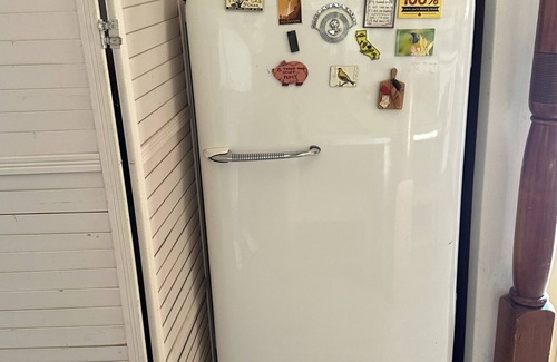 This cabin feature many antiques for that rustic cabin experience. With magazines and books from 50's and even an resto-mod record player for your enjoyment. Although it is not used there is even the original outhouse still on the property! A place to get away from it all for sure. You will love the privacy and lounging on the large deck while cooking on our egg BBQ. Check our other properties on VRBO too!