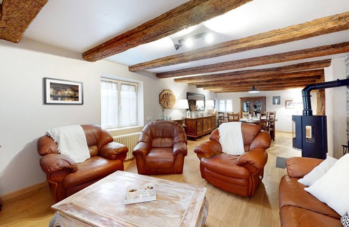 Experience the unique atmosphere of this lovingly restored holiday home in the heart of Alsace. Let yourself be enchanted by the historic charm and enjoy a relaxing holiday. Step into a cosy ambience. Wooden beamed ceilings, natural stone walls and stylish wooden furniture give the living area a warm and inviting atmosphere. Relax on the comfortable sofas in front of the wood-burning stove or enjoy evenings together at the spacious dining table. The open-plan kitchen invites you to cook together. Throughout the house, you will feel the authentic character of an Alsatian half-timbered house, combined with modern living comfort.