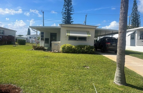Your Hobe Sound adventure begins at this 2-bedroom mobile home. Nestled in a nice and lovely neighborhood that is a short drive or a 15 minute bike ride to Jupiter Island beach. This property offers a comfortable and perfect retreat for guests. With a cozy living room featuring a sofa bed, it provides additional space for relaxation. The well-equipped kitchen allows you to prepare delicious meals, while the washer and dryer ensures convenience during your stay. Publix grocery store is 3 blocks away. Whether you're exploring the nearby attractions or simply enjoying the peaceful surroundings, we hope you'll enjoy your stay at our mobile home.