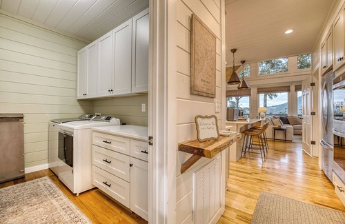 Upstairs are two large king bedrooms and one bath with a tiled shower. Downstairs there is a game room with sitting area with tv and xbox, couch, table and chairs, and ping pong table. Also NBA Jam and XMEN arcade game. The bedroom downstairs has a king bed and a bunk bed in it in case you want the kids in your room. There is also a separate bunk bed in sleeping nook in the lower level. The bathroom is off the bedroom and also accessible by the the sleeping nook.