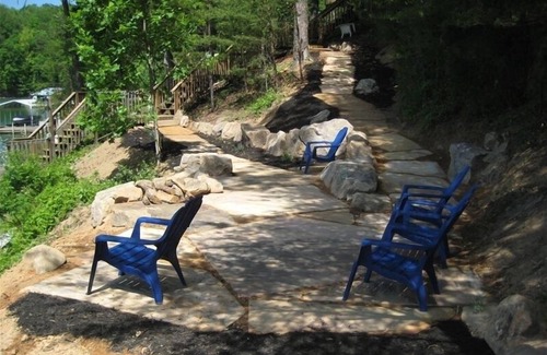 Located on Big Creek with one of the most beautiful views on the lake. The house is built right on the 1044 line. The closest a house can be built on the lake. A short walk on steps to the water and dock with 2 covered slips and a sitting area to enjoy the sun and swimming. 2 covered decks with plenty of outdoor furniture to relax enjoy the views and a gas grill.