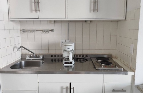 La cocineta está equipada con estufa, refrigerador, licuadora, cafetera, microondas, vajilla completa, cubiertos y varios utensilios. Tiene una mesa para tres personas. Posee un bonito balcón con espectacular vista al mar, desde el cual podrás apreciar los hermosos amaneceres.