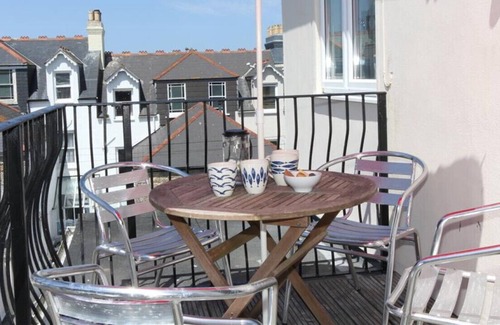 A cosy first floor apartment situated just a short stroll from the harbourfront and beaches in St Ives. The property is attractively furnished throughout with an open plan living area that includes a well-equipped kitchen and access to a private balcony with seating and a sea view. The master bedroom has an en-suite shower room and there is also a twin bedroom and another separate shower room.