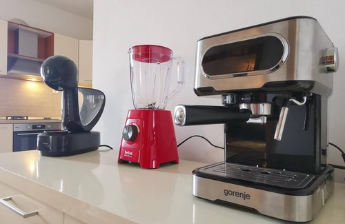 Apartment features WiFi, two air conditioning devices, one in living room and the second one in bedroom, so as flat screen TV and cable TV. It consists of kitchen equipped with refrigerator, oven, microwave, water kettle and toaster, as well as dining area, sofa and sitting area and two private bathrooms, both containing shower and hairdryer.