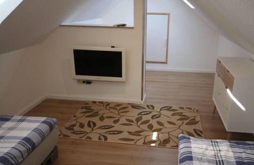 The holiday apartment over 2 floors is modernly furnished, has 3 bedrooms, bathroom with sauna, shower and toilet. The kitchen is fully equipped with a dishwasher, stove with oven, coffee machine, kettle, toaster, etc. Each bedroom has satellite TV. WiFi is available. 1 double bedroom, 2 bedrooms with details.