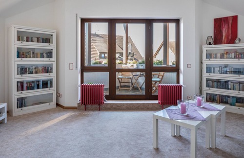 The holiday apartment "Dreiländereck" can accommodate 4 people - not suitable for children under 6 years. It is located in Hartheim and is the ideal accommodation for a relaxing getaway. The 80 m² property consists of a living room with a sofa bed for 2 people, a fully-equipped kitchen (including a dishwasher, a milk frother and a coffee machine), 1 bedroom and 1 bathroom. Additional amenities include Wi-Fi (suitable for video calls), a TV, air conditioning (runs from 6 pm until 10 pm in summer), a fan, heating as well as a washing machine.