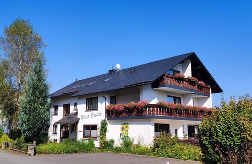 Haus Erika with its four vacation apartments is situated in a quiet, sunny location in Stryck with views of the Upland mountains and the new Skywalk. Surrounded by wonderful hiking trails, the Mühlenkopf ski jump, numerous cross-country ski trails and the beautiful Stryck pond. Our house is owner-managed and service-oriented. The Behle family live in the house and look forward to looking after you personally.