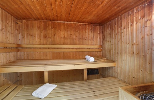Layout: Kitchenette(microwave, dishwasher, fridge, electric hot plates), Living/diningroom(double sofa bed, TV(paid)), bedroom(double bed), sleeping niche(bunk bed), bathroom(bath tub), toilet, balcony, swimming pool(shared with other guests, heated, indoor)