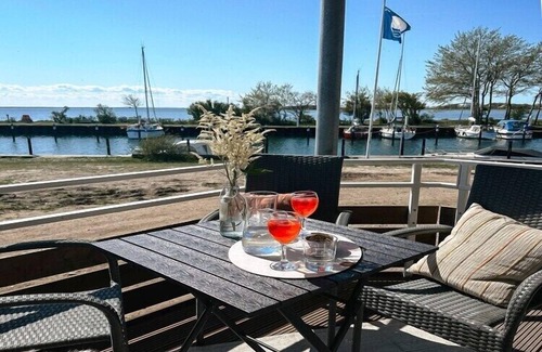 The heart of the apartment is the living room. A modern 32-inch Smart TV and a radio are available for your entertainment. The high-quality kitchenette is fully equipped with a ceramic hob, filter coffee machine, kettle, spacious refrigerator with freezer compartment, dishwasher, and toaster. Of course, you'll also find all the necessary cooking utensils and dishes to prepare your favorite meals. The bedroom features a spacious double bed with high-quality Emma mattresses. The children's room is a true paradise for our little guests: an adventurous bunk bed invites you to snuggle and dream, while a selection of toys provides entertainment. The modern shower room with toilet offers convenience for your daily routine. A coin-operated washing machine is available for your use in the basement. The absolute highlight is the incredibly beautiful view. The balcony offers a direct view of the harbor entrance and the kite and surfing area. The free Wi-Fi allows you to stay in touch with your loved ones or plan your next excursions even on vacation. Look forward to relaxing days in a car-free harbor – completely free of traffic noise, but with plenty of peace and security. You can conveniently park your vehicle in the nearby public parking lot (approx. 400 meters away). We will provide you with a parking permit for the duration of your stay. You are, of course, welcome to stop briefly at the house for loading and unloading. To ensure the quality of life for all guests, smoking is not permitted anywhere in the apartment. Whether you're a family, kitesurfer, nature lover, or couple – here you'll experience relaxing days right by the water. In our Hygge harbor, Nordic coziness, clean style, and a true coastal atmosphere come together. Highlights included: All consumption-based energy costs, Wi-Fi, parking space (parking permit)