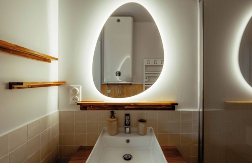 The cozy and welcoming master bedroom is equipped with a double bed and a large wardrobe to organize your belongings, ensuring optimal comfort and restful nights. The modern bathroom is equipped with a shower, quality towels, and toiletries to provide you with a pleasant and convenient experience.
