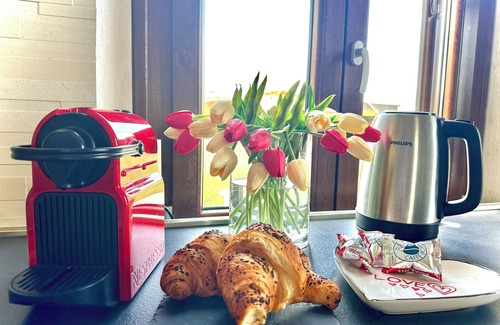 No need to pay for a restaurant every night, when you've got an oven, a stovetop, and a microwave on hand. Bathroom amenities include a jetted tub, along with a hair dryer, a bidet, and towels. Other amenities include bed sheets, air conditioning, and heating.