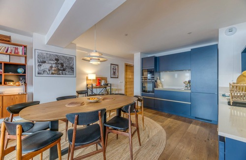 Located in Villard-Reculas, the holiday apartment Klochette - Charme Et Famille offers guests a fantastic view of the Alps. The 120 m² property, ideal for art lovers, consists of a living room, a kitchen, 5 bedrooms and 4 bathrooms as well as 2 additional toilets and can therefore accommodate 11 people. Additional amenities include Wi-Fi with a dedicated workspace for home office, a beautiful fireplace, a smart TV with streaming services, a washing machine, a dryer as well as children's books and toys. Furthermore, a table tennis table is available on the property. A baby cot and a high chair are also available.